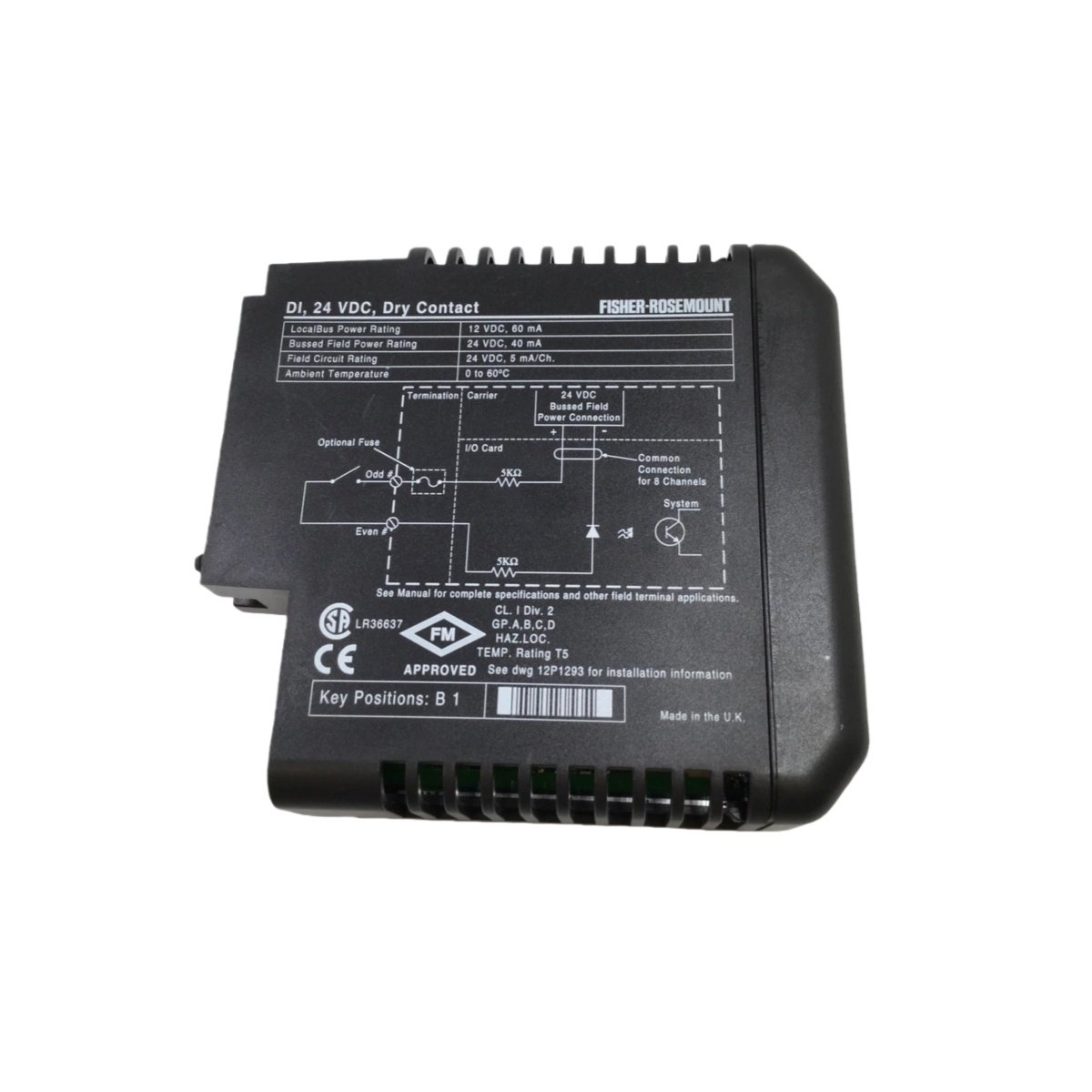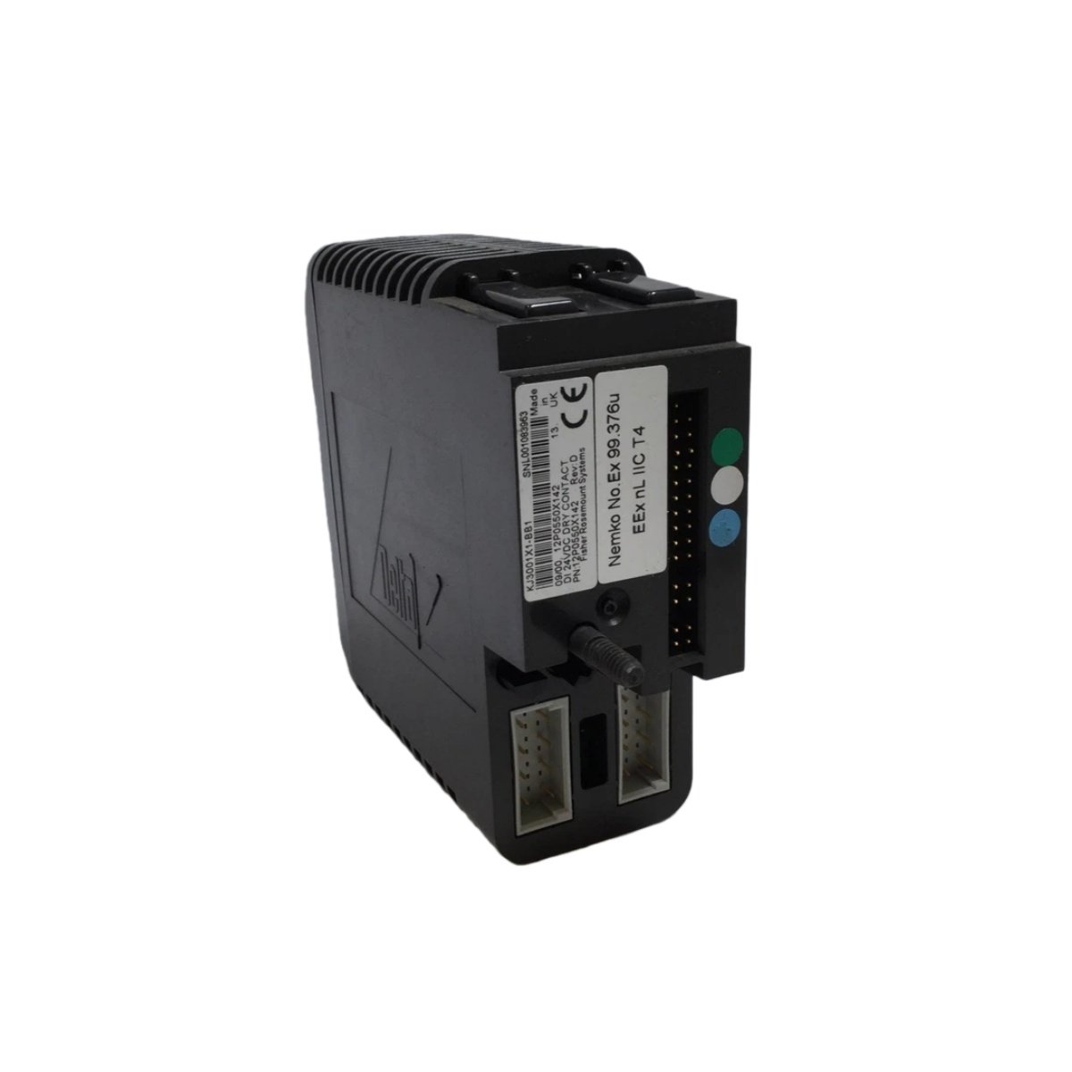 The Emerson KJ3001X1-BB1 12P0550X142 is an 8-channel, 24VDC isolated discrete input module for DeltaV systems. This module interfaces with dry contact field devices like push buttons, limit switches, and sensors. It converts the on/off state of these contacts into reliable digital data for the controller. Consequently, it is essential for monitoring plant status, safety interlocks, and equipment conditions.