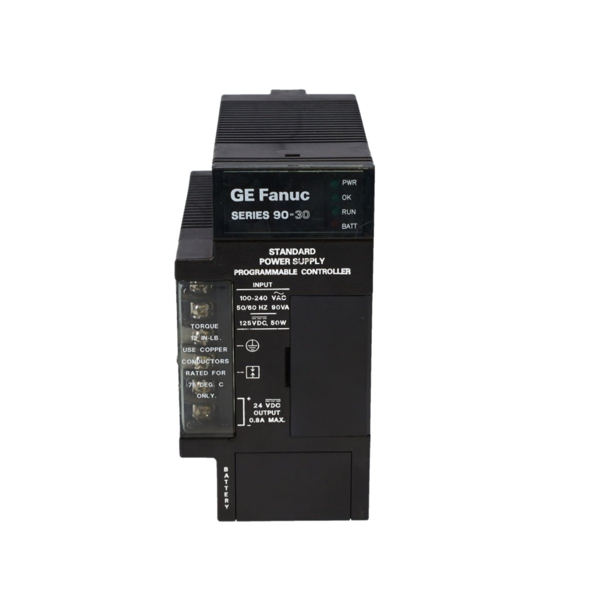 - Designed for leftmost baseplate installation, ensuring compatibility with Series 90-30 PLCs.