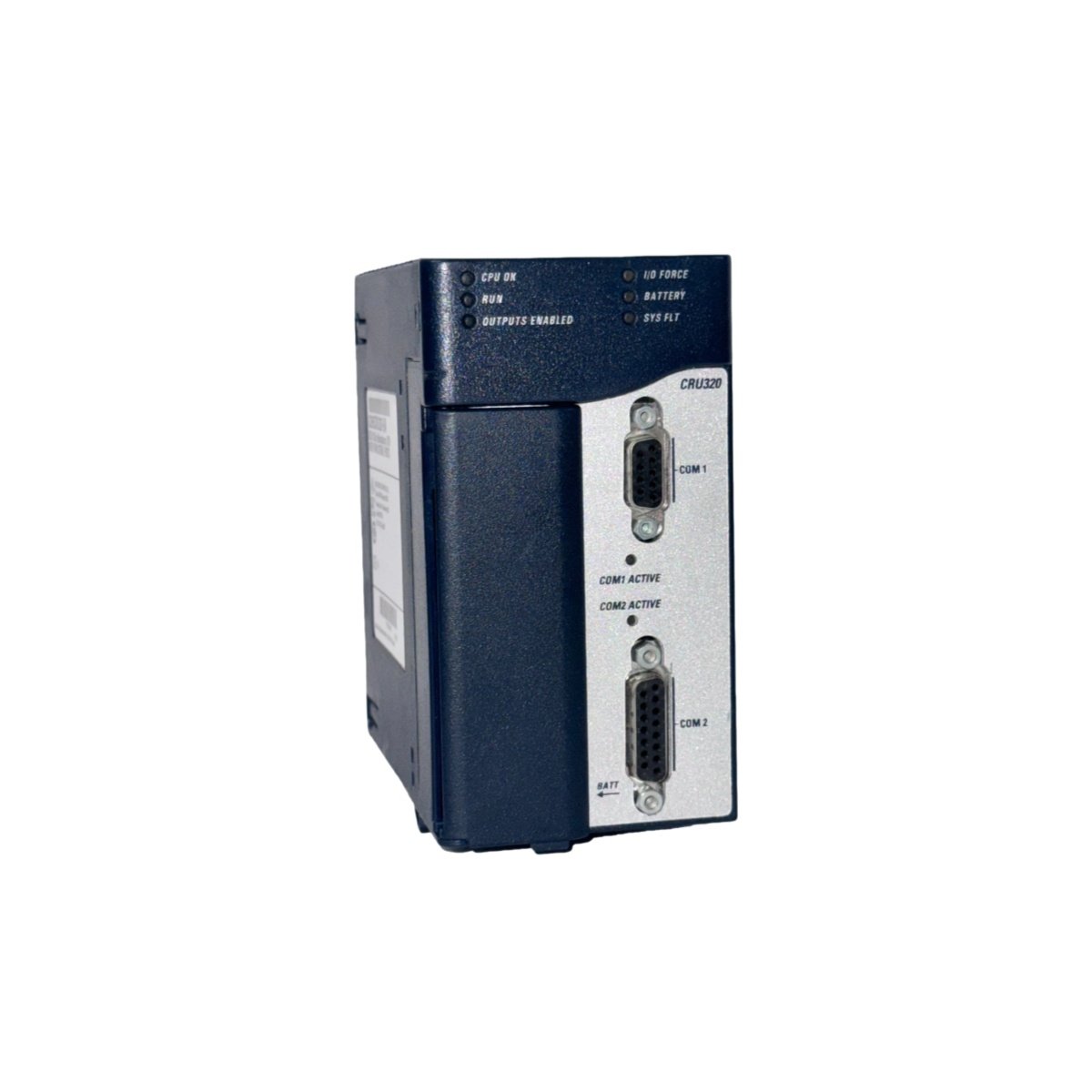 An onboard lithium battery maintains program and data memory during power-down conditions. This battery provides up to five years of data retention at normal operating temperatures. The CPU monitors battery voltage and alerts users well before the end of service life. You can replace the battery without removing the module from the backplane.