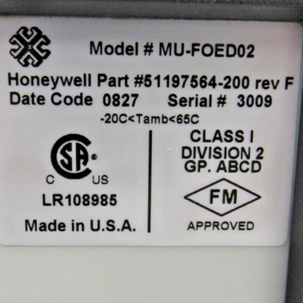 Model & Manufacturer: Honeywell 51197564-200