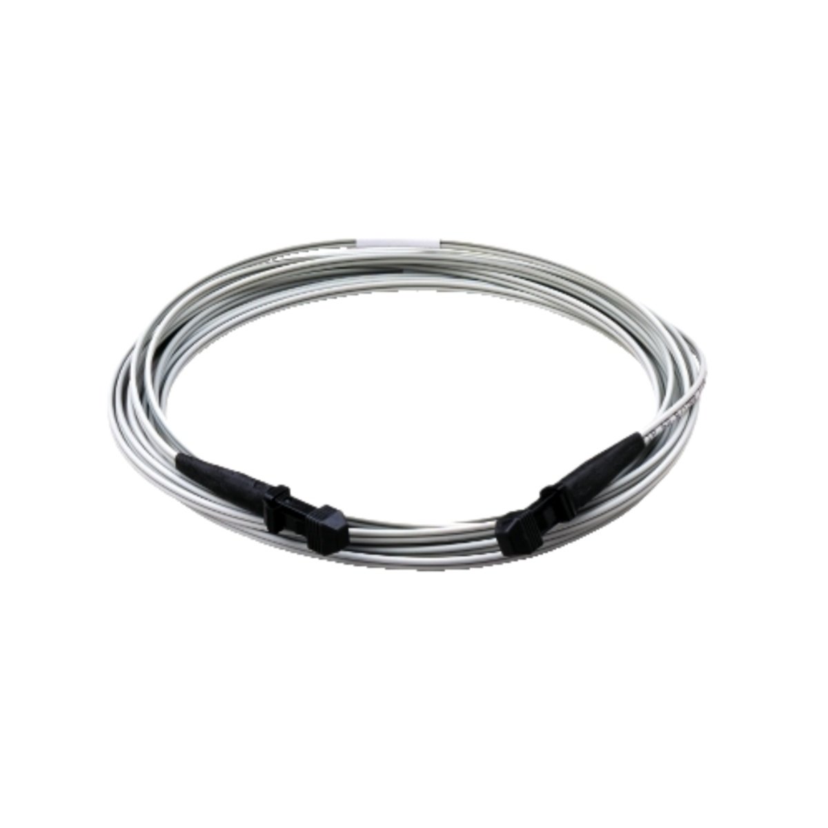 This cable assembly features ST style bayonet connectors at both ends, the standard interface for Quantum remote I/O networks. The bayonet locking mechanism provides secure retention while allowing rapid disconnect for maintenance.
