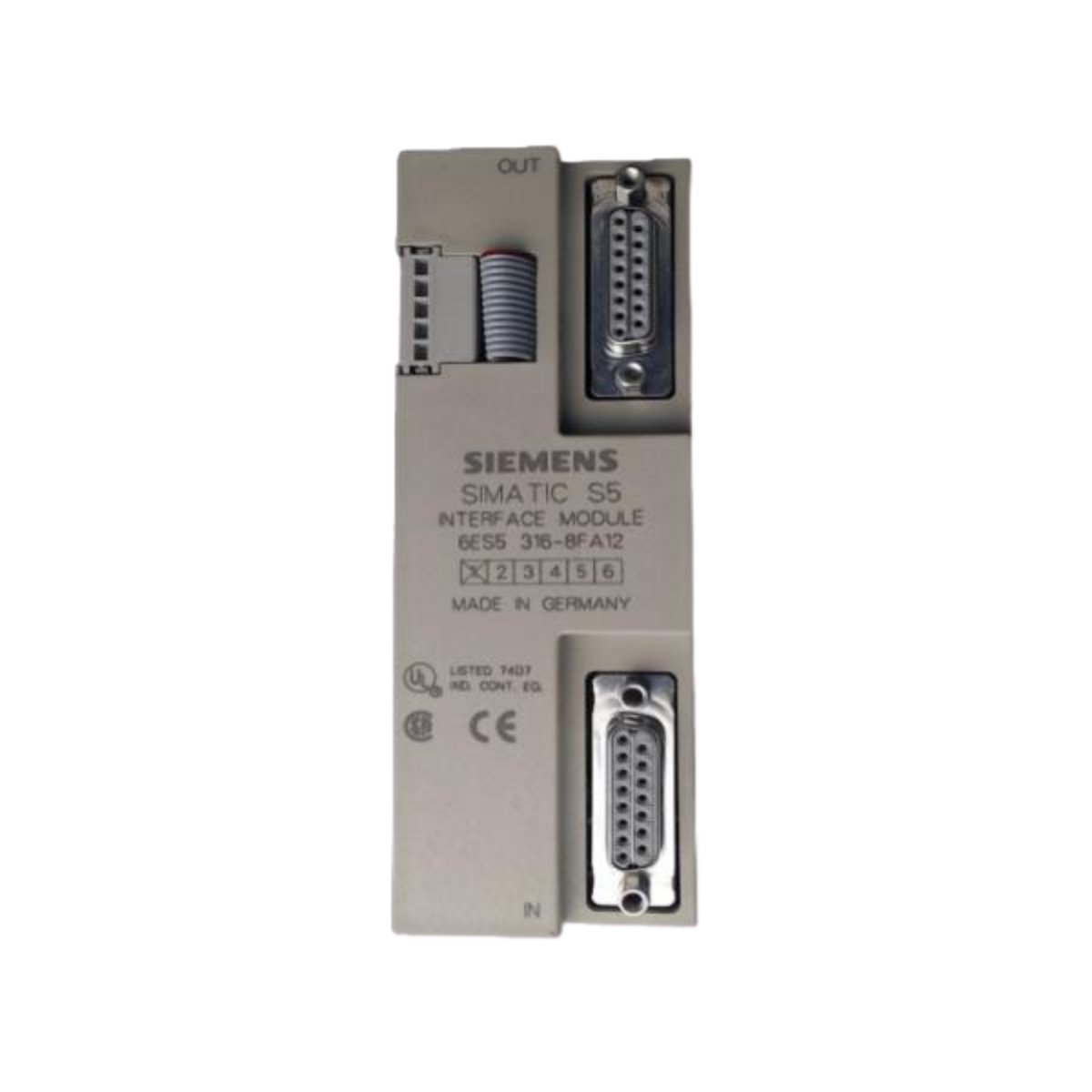 This Siemens interface module plugs directly into standard S5 backplanes without special tools or adapters. You connect expansion racks using shielded twisted-pair cables with 15-pin D-sub connectors. The module automatically configures itself based on rack position and system requirements. Clear labeling on the front panel indicates connection points and status LEDs.