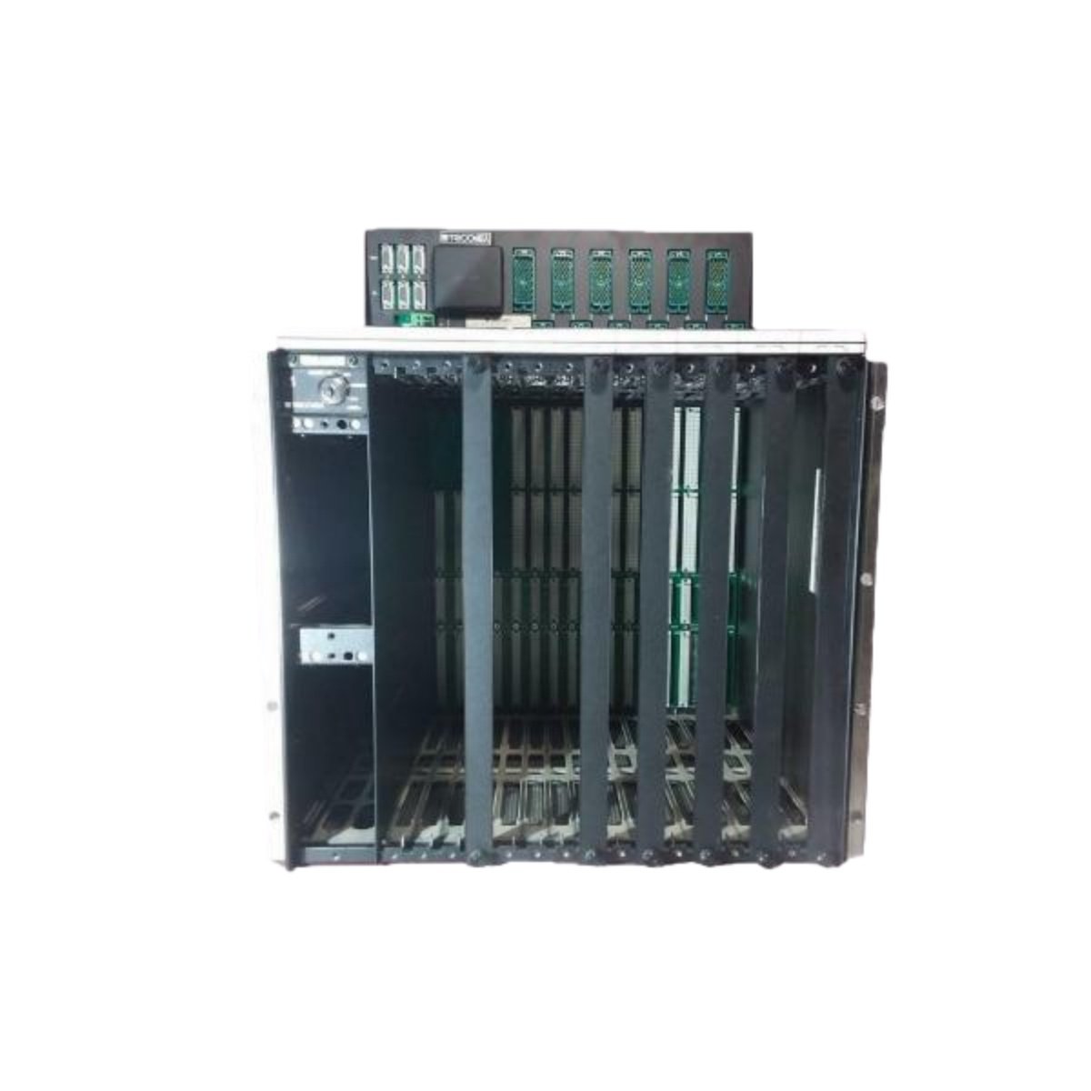 Triconex 8110 features heavy-gauge steel construction with protective coating for durability. Its 4U height fits standard 19-inch equipment racks commonly found in industrial settings. The chassis measures 482 mm square for consistent cabinet layout and airflow management. At 28 kg, it provides a solid foundation for installed modules and backplane connections. Integrated fan trays ensure proper cooling for all system components. This robust design withstands vibration and shock in industrial environments.
